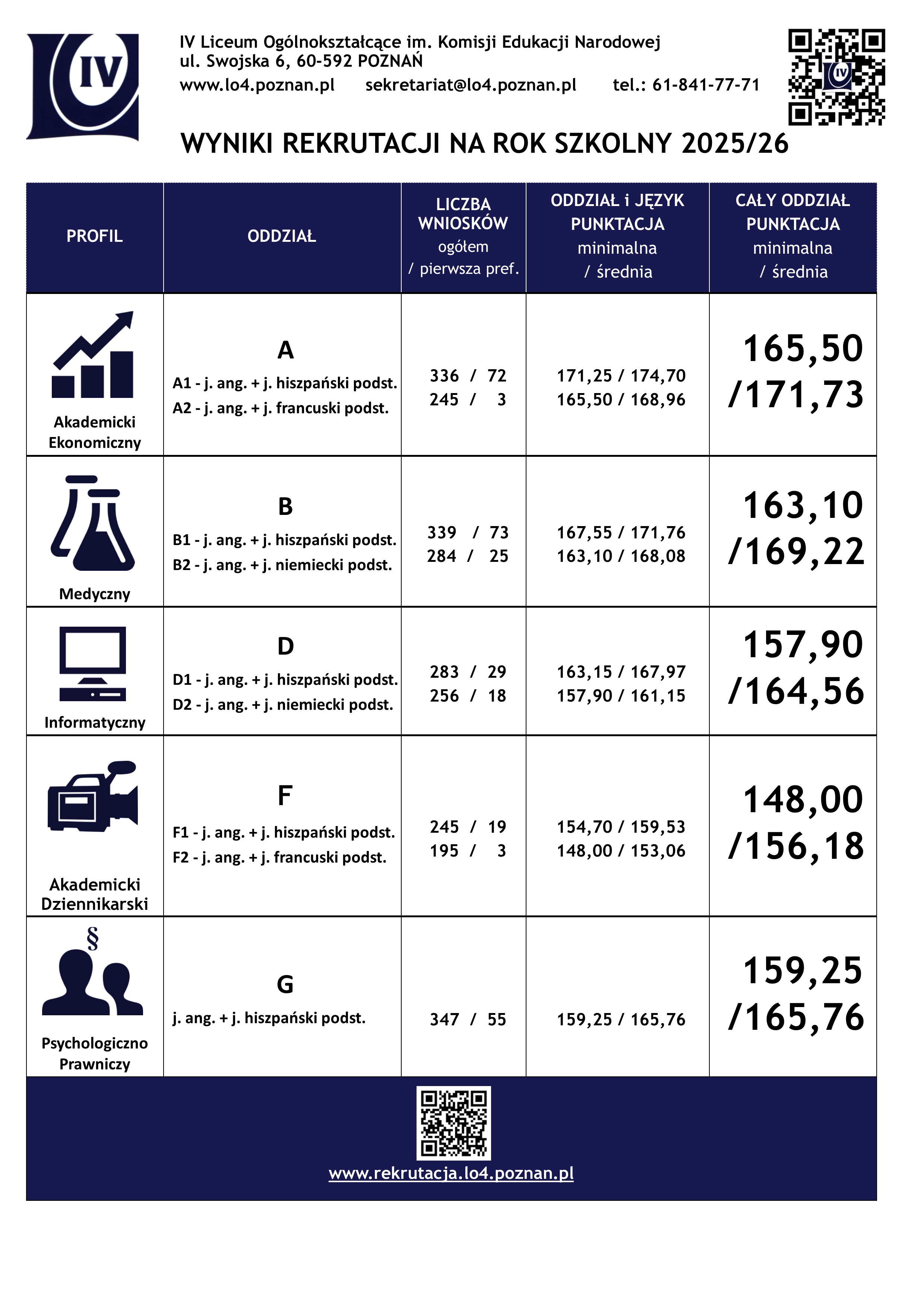 Informacja o minimalnej i średniej punktacji w rekrutacji na rok szkolny 2025/26